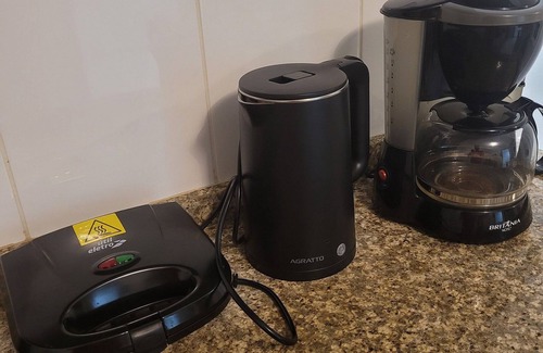 Enjoy the convenience of a fully equipped kitchen, perfect for preparing quick meals and snacks. The utensils and appliances provided ensure practicality during your stay.