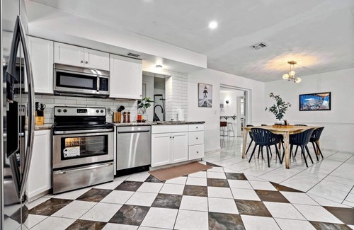 Beachside Escape : Poolhouse w/Game Room + Grill is located in Lantana. Beachside Escape : Poolhouse w/Game Room + Grill provides accommodation, featuring Fireplace/Heating, Child Friendly, Kitchen, among other amenities. This House features Fireplace/Heating, Child Friendly, Kitchen, to make your stay a comfortable one.