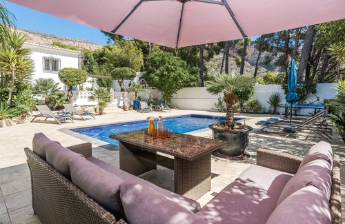 Discover Villa Tranquila, a stylish three-bedroom villa nestled at the foot of the Montgo mountain with its amazing views and trails in the prestigious residential area of Los Lagos, Jesus Pobre and close to the nearby towns of Javea and Denia. Designed for families and mature groups, this peaceful retreat combines elegance, comfort, and privacy to create the perfect holiday haven.The villa offers a lovely outdoor space featuring a private pool, large terrace surrounded by gardens, providing a serene environment for sunbathing, reading, or spending quality time with loved ones. A standout feature of Villa Tranquila is its BBQ area, equipped with a gas BBQ, perfect for alfresco dining and poolside gatherings at the large dining table where lunch and dinner mix into one with family and friends.After lunch relax with a glass in the comfortable seating area and pass the time of day with family and friends or read a book in the secluded suntrap away from the hustle and bustle of the pool. If sunbathing is your thing, then Villa Tranquila has it covered with sunbeds positioned around the pool to catch every angle of the sun.Inside, the villa boasts a bright and open-plan lounge that flows seamlessly into a fully equipped kitchen and spacious dining area, creating a welcoming atmosphere for shared meals and relaxation. One king-size bedroom come with en-suite bathroom, offering ultimate privacy and comfort, while a second king-size room and a twin bedroom share a beautifully designed family bathroom. Each bedroom is air-conditioned to ensure a restful and comfortable stay.Located just a 15-minute drive from Javea’s stunning beaches, lively bars, and renowned restaurants, within a five minute drive to the renowned La Sella golf course and Spa Villa Tranquila strikes the perfect balance between seclusion and convenience. Thoughtful touches such as a welcome pack, beach towels, and high-speed Wi-Fi enhance your stay, ensuring a stress-free and memorable experience.Whether you're here to unwind by the pool, enjoy alfresco dining, or explore the beauty of Jesus Pobre and the local towns of Javea and Denia, Villa Tranquila promises a luxurious escape you'll want to return to year after year.To help keep a relaxed and respectful atmosphere for all our guests and neighbours, we’re not able to accept single-sex groups or any group under the age of 25. We really appreciate your understanding and look forward to welcoming you!