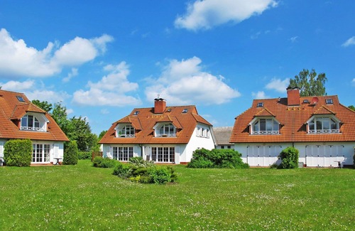 Resort "Achterwasser" in Zempin, Germany offers a vacation rental experience with 7 houses and 28 apartments on the premises. The complex features lawns and playgrounds, though dogs are not permitted in those areas. Parking is available on the premises, allowing for convenient access to your accommodation.