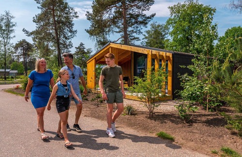 EuroParcs De Hooge Veluwe is a vacation rental located 8 km from the center of Arnhem, Netherlands. The property boasts a natural setting with trees, meadows, and a pond, along with amenities like a swimming pool, indoor pool (seasonal availability: July 1 to August 31, open from 9:00 AM to 4:00 PM), and facilities for boccia and children's playground. It offers a reception area, restaurant, sauna, fitness room, infrared sauna, trampoline, shopping facilities, and a shared washing machine (extra charge). Parking is available, albeit with a limited number of spaces, and an EV charging station is provided.