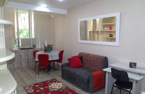 The apartment is a comfortable 65 m² room and living room containing a guest toilet, a full bathroom and a full kitchen with under-counter cabinets, stove, refrigerator, water cooler with ice water and the necessary utensils. Telephone and wi-fi available. The building has 24 hour doorman and is located in an accessible area and well located in the City Center, near Cinelândia.