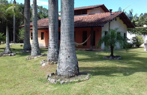 Beautiful, modern, large and comfortable country house for those seeking Peace, Peace, Leisure and Harmony in the midst of fresh air, mountains and nature. 80 thousand liter pool, gourmet space facing the pool w / wood stove, oven and barbecue. House with 4 large bedrooms and 1 suite, 3 large rooms, fireplace, dining and visit, large internal kitchen, service area, social bathroom with conservatory, mezzanine with 2 very cozy rooms one of video and reading transformed into 4 bedroom, and a large recreation area with multi-sport lawn, stream and gardens. Located just 55 km from the capital and 50 meters from the asphalt, this paradise is perfect for those who want to have a great time with family or friends.