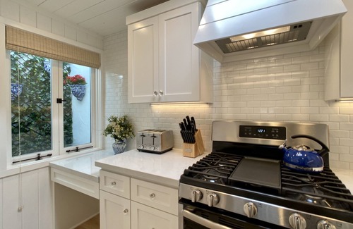 Beautiful cottage, completely remodeled with a beach ambiance. It boasts of all new furnishings including a fully stocked kitchen with all new appliances, cabinets and quartz counter tops. The dining area has a custom banquette and seats 4 comfortably. The open living room is light and bright with a new comfy sofa and flat screen TV. The master bedroom is charming and tranquil with a new king bed, signature cotton bedding and a flat screen TV. The cozy guest bedroom has 2 new custom platform twin size beds. The bathroom shines with designer appointed fixtures and a custom glass shower.