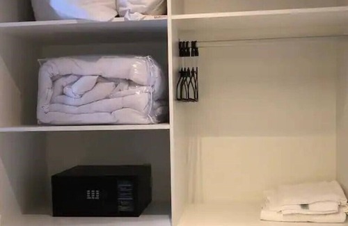 This vacation rental features a safe and air conditioning. Bathroom amenities include towels, toilet paper, and soap.