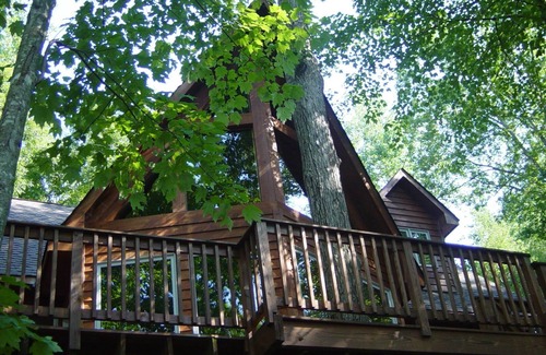 Welcome to the Woodland Lake Retreat at Lake Anna. This water front home has 3 bedrooms with queen beds, 3 full bathrooms and 1 half bath. The house offers lots of living space, a fully stocked kitchen, large back deck, covered front porch, back patio, and private balconies off both guest bedrooms. Located in a gated community on the public side of the lake, the house sits on a 1 acre waterfront lot full of trees, nature, and wildlife. Just a short walk from the back deck down a mild slope takes you to the dock nestled in a quiet no wake zone. The dock provides ample space to park your boats during your stay. You can also enjoy swimming in the cove away from boat traffic and waves while still having the opportunity to drive your boat to waterfront restaurants and stores.