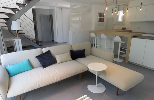 100 meters to the long sandy beach with a swimming pool ! 2 level house with a 45m2 large living room with an open kitchen. 3 different terraces : 1 downstairs, 2 at the first floor to enjoy the calm in the evening. Bakery and conveniencies are at a walking distance.