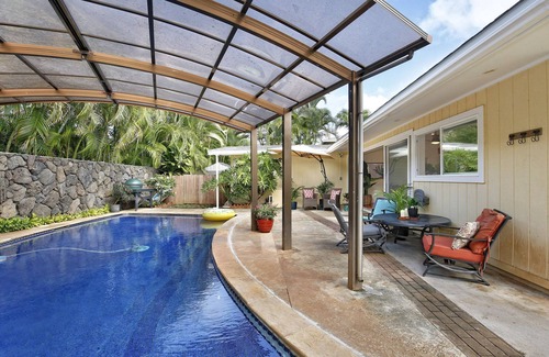 Yes, this Kailua house has a swimming pool. Check the Facility Overview section for details about the pool and other available facilities.