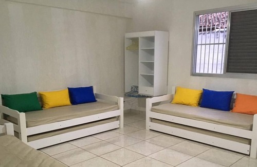 Kitnet reformed, c / 01 parking space, sleeps up to 06 people, with 03 new bicamas, new mattresses, shelves, drawer and macaw for clothes, table c / 04 new stools, new refrigerator, new stove, semi-new microwave, tv , kitchen with household utensils, wc w / glass box, ceiling fan, 02 beach chairs and 01 umbrella, ground floor. Located 500m from the beach, only 7 min. walking, very close to the beach to go walking and away from the noise. to rest after a day at the beach. Best cost-benefit of Praia Grande, it has no equal.