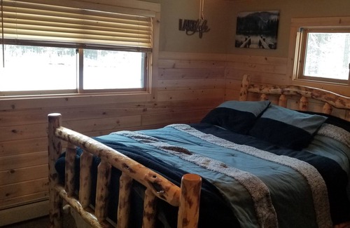 Come enjoy our newly remodeled lake front cabin, with spectacular views. Upstairs there are 2 bedrooms, bedroom 1 has a queen size bed. Bedroom 2 has 2 bunk beds with 3 singles and 1 double beds. Down stairs walkout basement area has a queen size bed as well with huge sofa.