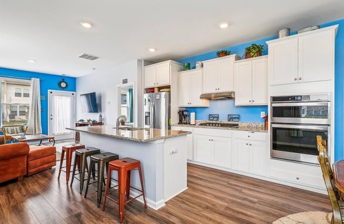Beautiful NEW awesome Coastal Villa vacation home has it all! Located in The Ocean View Beach Club, one of Bethany's newest resort communities, less than 2 miles only minutes from the sand, sun, boardwalk, shops, and restaurants. A fantastic place to launch your family's beach adventures, this amazing luxury townhome features 4 bedrooms plus loft-den area and 2 full baths plus 1 half. First floor has a spacious open floor concept with master bedroom suite and loaded kitchen including granite counters and stainless appliances. On the second floor there are three bedrooms and oversized loft with a large flat screen TV. New addition for 2022: Back yard patio. Family friendly with bikes, board games, lacrosse, badminton and more! Amenities include central air conditioning, laundry room with washer/dryer, dishwasher, microwave, gas grill, 5 TVs and WiFi. Easy 5-minute stroll from the resort style community Club house to enjoy a relaxing afternoon out on the expansive sundeck by the outdoor pool or a game of basketball or pickleball with friends and family. Recharge at the health club-style fitness center including sauna, massage, a steam room and more! Recreation fee of $38. Per person/ week for community amenities.