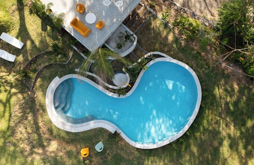 Our refreshing pool is tucked into a lush garden space, surrounded by native greenery and tropical flowers. Take a dip while watching the waves in the distance — it’s especially magical during golden hour! 🌞