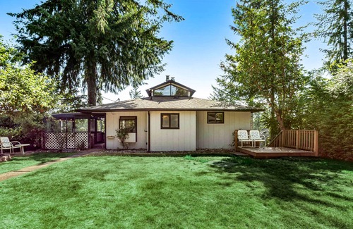 Slow down and adopt the lake life here at The Lakefront Treehouse, a stunning Lost Lake gem perched high above the calm waters and grassy lakefront below. While this house is not an actual treehouse, it feels like it’s in an eagle’s nest with views of the Olympic Mountains and a 180-degree view of the lake. Fill each day with exciting activities everyone will love, including boating, fishing, swimming, and kayaking from your private dock. Two adult kayaks, one child’s kayak, life vests, paddles, a canoe and oars, lake floaties, two fishing poles, and brand-new paddleboards are provided. Plus, the decks, firepit, and sunroom are furnished and ready to host cookouts using the gas grill or quiet evenings spent reminiscing over a favorite cocktail.