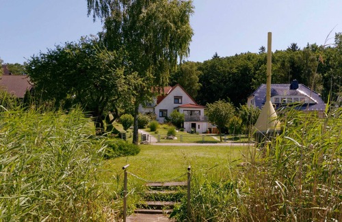 The family-run house Seeblick is quiet and no through traffic at the end of the fishing village Seedorf Sellin on Rügen - in the middle of the Biosphere Reserve Southeast Rügen. We invite you to two large apartments with separate entrances. They are a great starting point for anglers, cyclists, the day on the beach in Sellin and the holiday with children on complaints. There is a private boat dock with rowboat. You can use our parking areas and there are parking facilities for your bicycles on the large property. The house Bylook is well suited for family holidays, anglers, sailors, cyclists, hikers, peace seekers and the Baltic seaside holiday without the hustle and bustle of the promenades (you drive from us by car, the free local bus or on the bike path 6km to Sellin the beach). The apartments are not barrier-free. If you book the house Havingblick (2 apartments) together with the house Das Lütte (2 apartments) and the house Incognito (1 apartment), the property is very well suited for group meetings and smaller, private parties (12-13 people total). We are looking forward to your visit!