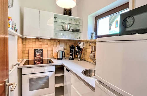 "Bergsonne", 2-room apartment 48 m2, lower ground floor. Spacious and bright, beautiful and tasteful furnishings: entrance hall. Living/dining room with satellite TV (flat screen). Exit to the terrace. 1 large double bedroom with 1 double bed (2 x 90 cm, length 200 cm). Small, open kitchen (oven, dishwasher, 3 ceramic glass hob hotplates, toaster, kettle, microwave, electric coffee machine). Shower/WC. Oil heating. Terrace 16 m2. Terrace furniture, electric barbecue (portable), deck chairs (2). Beautiful view of the garden. Facilities: Internet (WiFi, free). Parking at the house. Please note: non-smokers only. Smoke alarm, fire extinguisher, no lift. Bed layout is flexible. There are more sleeping options available than the maximum number of people allowed which may, however, not be exceeded.