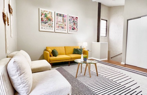 Enjoy a modern and historic experience at this centrally-located home off the renowned South Street in Philadelphia. This gorgeous home's uniqueness has been preserved in this beautifully maintained trinity townhome with original stained glass windows, hardwood floors, and the signature spiral staircase. You will be at the center of unique Philly attractions that can satisfy anyone from the foodie, history buff to the experienced traveler! Guests are astonished at the quietness of this cozy getaway for being in view of South Street as they enter the gated alley to the end unit. Entering into the kitchen with the patio off to the left - guests can enjoy a meal at the marble dining table, enjoy afternoon tea or coffee or simply enjoy the outdoors on your private patio.