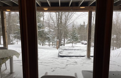 Ski in and out close to the skiing and village but quiet. Shared hot tub with upper unit. Well equipped, rustic pine paneling large outside deck with gas BBQ. Very close to hiking and x country trails.