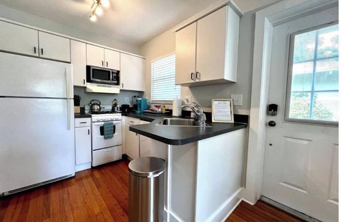 Bliss Villas 3 is the perfect South Florida getaway for you to spend your days enjoying the heated pool tropical oasis, sun, beaches, and culture. For those who love dining out or late night fun, walk one block to the downtown attractions. Best location and amenities are found in this gorgeous property that houses 4 villas surrounding a pool, courtyard, outdoor dining spaces, grill, and outdoor shower. Your villa has a private entrance, washer/dryer, kitchen, central air and parking.