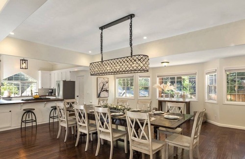 NEW! EV charging available! Awaken to crisp mornings nestled in the redwood forests with access to your private hot tub. Float the Russian River and relish award-winning wineries in Sonoma County. Upon returning, dine alfresco on the sundeck featuring a BBQ, firepit, and patio seating with cantilever umbrella. This newly renovated, modern farmhouse home will excite you boasting luxurious amenities including marble fireplace, game room with billiards, ping pong, and retro video game console.