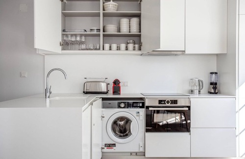 Thoughtfully designed with bespoke finishes, modern furnishings, and a fully equipped kitchen, you’ll enjoy that “I’m home” feeling with this Blueground apartment. Whether you’re lounging in your cozy living room streaming the latest and greatest entertainment on the smart TV or premium wireless speaker, or getting some well-earned rest on the superior quality mattress with luxury linens, you’ll fall in love with everything this Santa Maria Maior apartment has to offer.