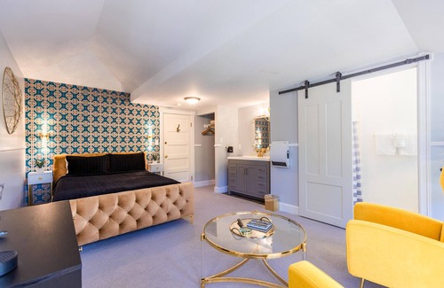 Boho Manor is an Gatsby themed hotel resort with multiple amenities like kayaks, paddle boards, bicycles, spa, a full restaurant and speakeasy. Come join for a cocktail with one of our specialty cocktails on a river lounge or firepit. Enjoy a Gatsby style river view room with a private bathroom and balcony between tall redwood trees. This stylish and unique place sets the stage for a memorable trip.
