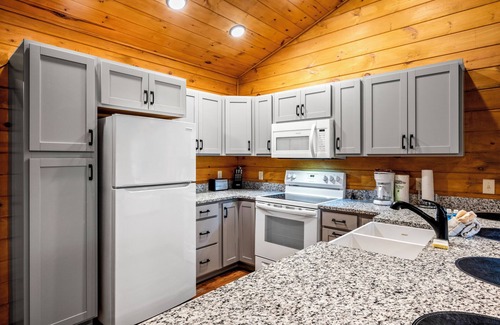BRAND NEW!!! This cozy cabin is approximately 1000 square feet in size. Located close to downtown Gatlinburg, Ober Mountain Ski Resort, Great Smoky Mountains National Park and the Gatlinburg Bypass. You will arrive to a flat paved driveway with plenty of parking for 2 vehicles. On the covered front porch is a hot tub for 4 people and a patio table and 4 chairs to enjoy the mountain scenery. Upon entering the cabin, you will enter into the cozy living room area with a 55" streaming Tv, WIFI, DVD player, electric fireplace, ceiling fan and a full guest bath. There is a fully furnished kitchen with farmhouse sink, refrigerator, stove, dishwasher, microwave and seating for 4 at the counter height bar. There is a large laundry room with a washer/dryer. The master bedroom has a queen bed, 32" streaming Tv, ceiling fan and a full ensuite bath. The guest bedroom has a queen bed and a 32" streaming Tv and ceiling fan. There is swimming pool access during the season (Memorial Day to Labor Day). One large pet crate is provided. Smoking is not allowed in the unit. Please smoke outside. If you smoke inside, you will be charged a $200 fee. Winter Weather Warning: The elevation at Peaceful Mountain Cabin is nearly the same as the lodge at nearby Ober Mountain Ski Resort. In case of inclement weather, 4 wheel drive and/or chains are advised. We recommend checking the weather and webcam at Ober Mountain Ski Resort to determine the weather conditions here. The City of Gatlinburg does an excellent job of keeping the roads open in winter, but in case of heavy snowfall, it may take a day or more to make the roads safe for travel. When staying here in the winter, it is advised that you bring extra supplies just in case.