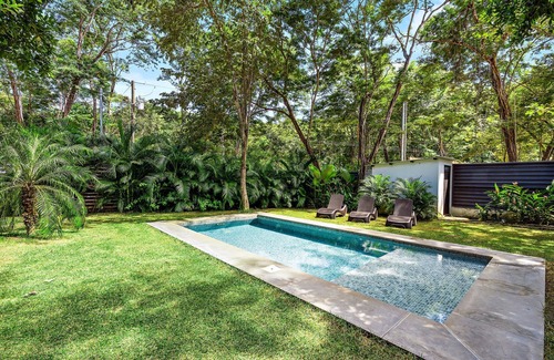 Stunning brand new modern tropical bungalow- Casa Oasis just minutes to Playa Tamarindo. Relax in a luxurious, safe, and comfortable 3 bedroom +3.5 bathroom home, with high speed internet 100 MBSP. Spend the day in the salt water plunge pool and enjoy outdoor dining with BBQ and covered sitting area. Stay at our resort-like private property near the beach, surrounded by nature and perfectly situated just minutes to the famous beaches of Tamarindo, Avellanas, Grande and Langosta.