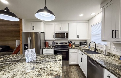 Kitchen: Unleash your inner chef in our fully equipped modern kitchen, featuring ample storage and stainless steel appliances, including a full-size refrigerator, oven/range, microwave, and dishwasher. With gorgeous granite countertops and all the essentials at your fingertips, meal prep is a breeze. Don’t forget your morning coffee—our Keurig coffee machine is ready for your all-day caffeine fix!
