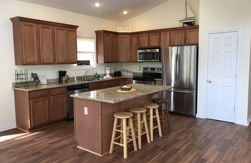 This cottage constructed in 2007 and updated in 2019 is located in a wooded setting in the quaint Little Lake Village subdivision in downtown Grand Rivers and is finished in high quality, coastal cottage architectural style. I have unlimited free AT&T 1 GIG Fiber internet with speeds up to 1,350 Mbps and many streaming services which may include YouTube Live TV, Disney+, Hulu, Prime Video, ESPN+, etc. Modern amenities include 4 HDTVs (70", 65”, 50", 48"), washer and dryer, fire pit and a fully-equipped kitchen/700-sq.-ft. great room with 12.5 foot vaulted ceilings.