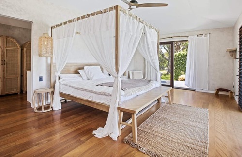 The poolside master super king bedroom with four poster bed and ensuite with large bath will ensure sleep comes easy. The king bedroom, queen bedroom and splittable king plus single bedroom all feature a neutral calming colour palette to let the outside shine in.