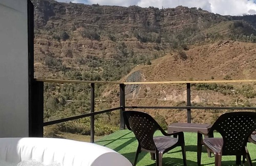 Located in Machetá, this 1-bedroom, 1-bathroom cabin lets you experience it all. Fans of nature and the outdoors will love being 35 minutes by car from Represa del Sisga and 42 minutes from Suesca Rocks. If you'd like to explore the area, you can make the 73-minute drive to Macanal Main Park or the 54-minute drive to Lake Guatavita.