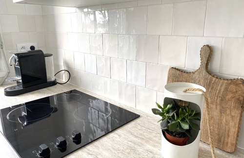 The kitchen is equipped with an oven, a stovetop, and a refrigerator, as well as a coffee maker, an electric kettle, and a microwave. Enjoy the WiFi and TV. And there's access to laundry facilities, so you can even pack a bit lighter.