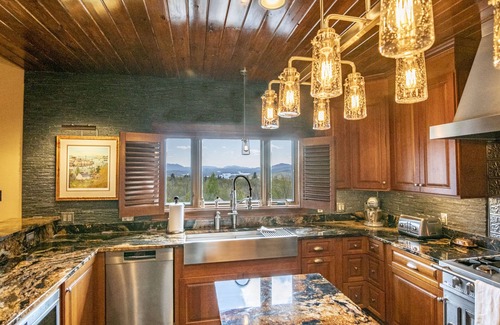 Camp Serenity is a high end lavishly furnished large home ideal for extended family groups and friends. This home offers 3 levels of living. The upper loft has a pool table, and there is a piano and a game room with air hockey and foosball. Newly renovated this 6200 sq. ft home built in 2000 on the highest point of Mount Pisgah with beautiful Saranac Lakes & Mountain views from inside and out!