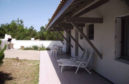 House full of feet which includes 2 bedrooms, a fairly large fully renovated, large living room, lounge area with TV. A bathroom fully renovated with a shower. separate toilet. Outside under the eaves seating for meals and 2 sunbeds to lie. barbecue all in an enclosed courtyard where you can put one or two cars. from the front of the house you can see the sand dune that hides the ocean that we hear very well. The house is south west facing sunny. The proximity of the plank road is 50 m and goes directly to the supervised ocean beach 'horizon'.
