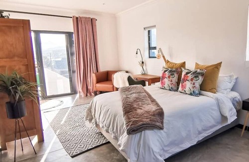 Modern and sophisticated, this tastefully designed home and breathtaking mountain views offer a perfect family getaway, located in the vibrant and multi-cultural Jamestown of the Stellenbosch Winelands. The 3 bedroom, 3.5 bathroom double-story home boasts premium finishings, open-plan living, a pool and braai area looking out to the mountains, ample garden space for pets and children to play, aircon in the bedrooms, and all the amenities needed for a luxury yet family-friendly retreat. Welcome to our modern, family-friendly Airbnb nestled in the vibrant community of Jamestown! Located just 3km from Techno Park and within easy reach of a variety of shops and amenities (1.5km to a wonderful shopping centre). With easy access to central Stellenbosch (7km away) and Somerset West (13km away), our Airbnb provides the perfect base for exploring the beauty of the Western Cape. Whether you're here for business or leisure, we look forward to welcoming you to our home-away-from-home in Jamestown! Our double-story home offers convenience and comfort for both short-term and long-term stays. Upstairs, you'll find three bedrooms, including a spacious master bedroom with an ensuite bathroom, a large guest suite with its own bathroom and kitchenette, and a twin room with a separate family bathroom featuring a relaxing bath. Each bedroom leads onto a shared balcony space where you can savor breathtaking views of the surrounding mountains – perfect for enjoying a morning coffee in bed. Downstairs, the living areas boast an open-plan layout, comprising a fully-equipped kitchen, dining area, and living room. Whether you're cooking a meal or relaxing with loved ones, you'll find everything you need for a comfortable stay, including crockery, cutlery, glasses, tea, coffee, sugar, a microwave, airfryer, and coffee machine. Our home is both pet and child-friendly, with a swimming pool, outside braai, and a large grassy area complete with a kids playhouse for outdoor fun. For added convenience, all bedrooms are equipped with air conditioning, ensuring a comfortable night's sleap year-round. Stay connected with high-speed wifi, and rest assured knowing that our property is secure with an electric fence, CCTV and alarm system. Plus, our 1kw inverter ensures that wifi and television remain powered during loadshedding, while a gas stove allows for cooking even if the power is out. There is a gas stove and 1kw inverter to keep the WiFi and TV on during load shedding.