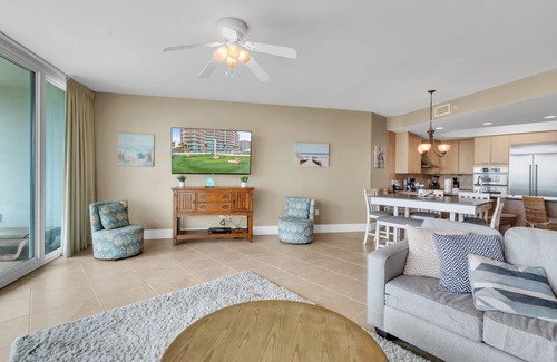 Your dream getaway awaits in this stunningly beautiful Caribe Resort condo. Offering 3 bedrooms and 3 baths, this unit boasts almost 1900 sqft of luxuriously appointed space. The master bedroom and living area step out onto a giant balcony where you can soak in the ocean breeze or gaze at the gorgeous waters of the Gulf. The elegant master suite features a king bed adorned with a top-tier mattress, accompanied by a master bath with a huge soaking tub and walk-in shower. The second bedroom is graced with a King bed and attached private bath, while the third bedroom features 1 full bed, 2 twin beds, and an attached bath. The sofa in the living room effortlessly converts into a queen sleeper, allowing the unit to accommodate up to 10 guests with room to spare.