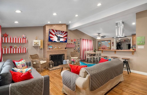 Step right up to this carnival lover's dream—totally clown-free! From the moment you walk through the door, you’ll feel like you’ve entered a whimsical carnival, complete with vibrant lights and playful decor throughout.
