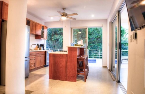 After a long day of adventure or relaxation, you can fall into either one king bed, two queens, or two bunk bed sets. Rinse off the sun and sand in the outdoor shower or in one of two full bathrooms. There is a fully equipped kitchen for you to try out your Costa Rican culinary skills or we can have a personal chef arranged for you. You can enjoy your meals on the dining table either outside or inside as there is an indoor/outdoor patio.