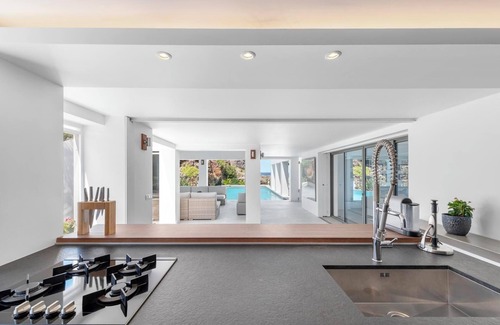 The living spaces, open to the outdoors, are filled with natural light and adorned with carefully curated designer pieces. The lounge, professional kitchen, and dining area come together in a harmonious flow that is both sophisticated and welcoming.