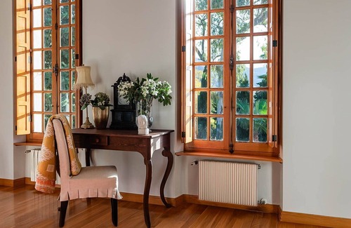 Set over one level, the main villa contains four comfortable bedrooms, each carefully furnished with its own style and character. A large suite features a four-poster bed, with tall windows that frame views out over the garden, whilst several smaller rooms take on a more traditional aesthetic with painted shuttered windows and beautifully upholstered furniture. All the bathrooms have been finished to a high quality, with spacious showers and smart fittings that ensure guests have an exceptional experience. Two further bedrooms can be found within a separate annexe, where they also enjoy a bathroom and neat kitchenette that makes a great option for guests looking for a bit of independence or additional privacy.