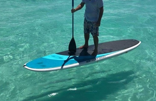 Come enjoy with us this private charter, let’s discover this beautiful Island called Isla Mujeres together. Enjoy your choice of cold drinks. Sunbath on the deck or paddle around with our standuppaddle boards, snorkel around reefs, all while enjoying music and the beauty of nature around here. The price here includes up to 7 guests for a 4 hour charter on a Catamaran around Isla Mujeres. If you have further questions, please send me a message. Happy to have you guys soon on board for a fun boat ride.
