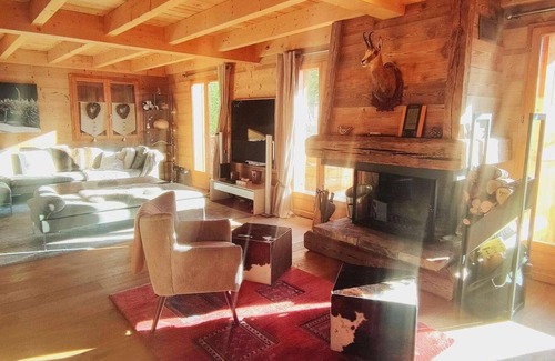 Magnificent individual chalet of 150 m², completely renovated, of high quality, comprising 5 bedrooms, 2 bathrooms, 2 shower rooms, living room dining room with fireplace and terrace, American kitchen, located on the heights of the resort, with panoramic view of the slopes and the mountain. Garage in the chalet + 1 parking space.