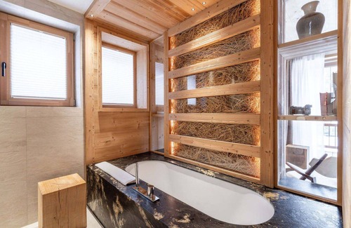 Chalet Khoton is part of a new development at the end of the allée des Cerisiers in Courchevel Le Praz. It has 4 levels and a surface area of 506m², with a relaxation area featuring a large swimming pool, two saunas, a hammam and two Japanese baths, in a style borrowed from luxurious quatamarans, and a living area at the top with a superb view over the valley in a pleasantly peaceful setting. Close to the slopes, all amenities and ski lifts.