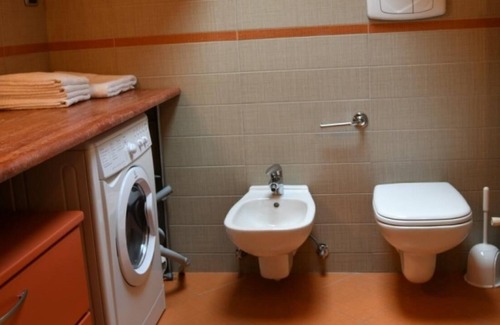 APT. RED - FIRST FLOOR (5 pax+1), 80 sqm: one room with a double bed, one room with three beds (or double bed+single bed), bathroom with tub and shower, living room with kitchen, fireplace, large terrace, own lawn garden.