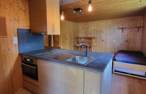 Chalet VOLIERE HAUT. -Outside: for 8 people, large terrace, garden, balcony, barbecue, sun tent, garden furniture. -Interior: 120 m2, closed entrance hall, living room with Scandinavian stove and dining area. -Bedrooms: 1 bedroom with 2 beds side by side (90/200) with private bathroom & WC, 3 bedrooms with x 2 beds (4x 90/200 and2x 90/210). -Sanitary facilities: 1 private bathroom & toilet with washing machine and dryer, 1 bathroom, 1 separate toilet. -Kitchen: open, ceramic hob, oven, fridge, dishwasher, microwave, Nespresso machine, fondue and raclette set. -diverse: Cable TV, WiFi, pets not allowed, table tennis, non-smoking, 3 private parking spaces at the foot of the chalet and a charging station for electric car, electric heating, ski room. - Possibility to rent in addition to the chalet VOLIERE HAUT: Studio VOLIERE BAS. -Outside: studio on the ground floor with lawn. -Interior: 40 m2, living room with a sofa bed (160/200) with 2 1-seater duvets, dining area. -Bedroom: 1 bedroom with bunk bed (2x 90/200) with toilet and washbasin. -Sanitary facilities: recently renovated (2024), 1 bathroom with shower and toilet. -Kitchen: newly renovated (2024), open, mini cooker, fridge, microwave + combi oven, fondue and raclette set. -Miscellaneous: WiFi, pets not allowed, non-smoking, electric heating. -NOTE: all beds are equipped with single duvets (standard dimensions 140x200 cm). Bed linen and bath/kitchen towels can be rented at the agency for an extra charge. - -- -- -- Final Cleaning: A normal cleaning is included in the rental price. -- -- Available Kitchen Towels: Can be rented at the agency. -- -- Available Bath Towels: Can be rented at the agency. -- -- Bedsheets: -- Can be rented at the agency. -- -- Parking: 3 private parking spaces at the foot of the chalet and a charging station for electric cars. -- -- Caution: A deposit of 500.00 is required. -- -- Cancellation Insurance: Included in the rental price for cancellation in case of major forces (medical attestation). -- -- Administrative Costs: None. -- -- Pets : According to description. -- -- Tourist Tax: Included in the rental price. --