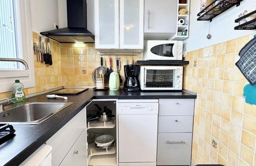 - Fitted and equipped kitchen (fridge, oven, dishwasher, coffee maker, toaster, kettle).
