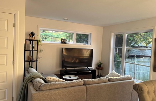 This charming house in Québec offers 2 inviting bedrooms, one with a king bed and the other with a full bed. The cozy office space also includes a crib for little ones. Guests can freshen up in the 2 bathrooms equipped with a hairdryer and shower. Relax in the tranquil atmosphere of this terrific property. Enjoy your time in Québec at our house.