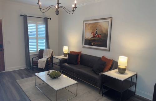 Discover this wonderful 2-bedroom gem in Aiken. This cozy condo features 1 king bed and 1 queen bed, perfect for a small group of guests. The kitchen has all you need with cookware and accessories to enjoy a night-in. Only a 5-minute walk to the Alley, where there is ample food, shopping, & entertainment. We are only a short distance from popular golf courses & horse venues - making this location ideal for your stay.