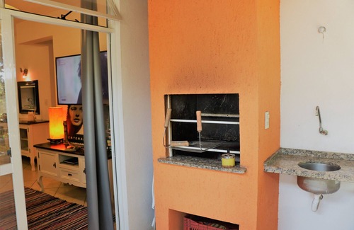 Charming apartment with all new furniture, ideal for two couples with children THE ONE QUADRA OF THE BEACH. Suite with air conditioning. Room with barbecue in large and airy balcony with beautiful view. Covered private garage for one car. One block from the sea. Close to everything, shops, services, restaurants, bars, supermarkets. Complete with microwave, iron, Smart Tv 48 ", wireless Internet (wifi), access to Netflix and Globoplay. Air Conditioning in Suite, and Queen size bed. Efficient ceiling fans in the other bedroom, living room, and kitchen. New orthopedic mattresses. Comfortable sofa bed in living room.