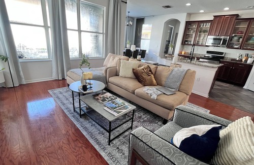 Your home away from home in Wesley Chapel with 3 bedrooms. This wonderful house offers all the comforts you need for a relaxing stay. Enjoy the gorgeous interior decor and cool amenities like WiFi and a washing machine. With 3 bathrooms, there's plenty of space for everyone. We'll be available to answer any questions while you stay at our place.